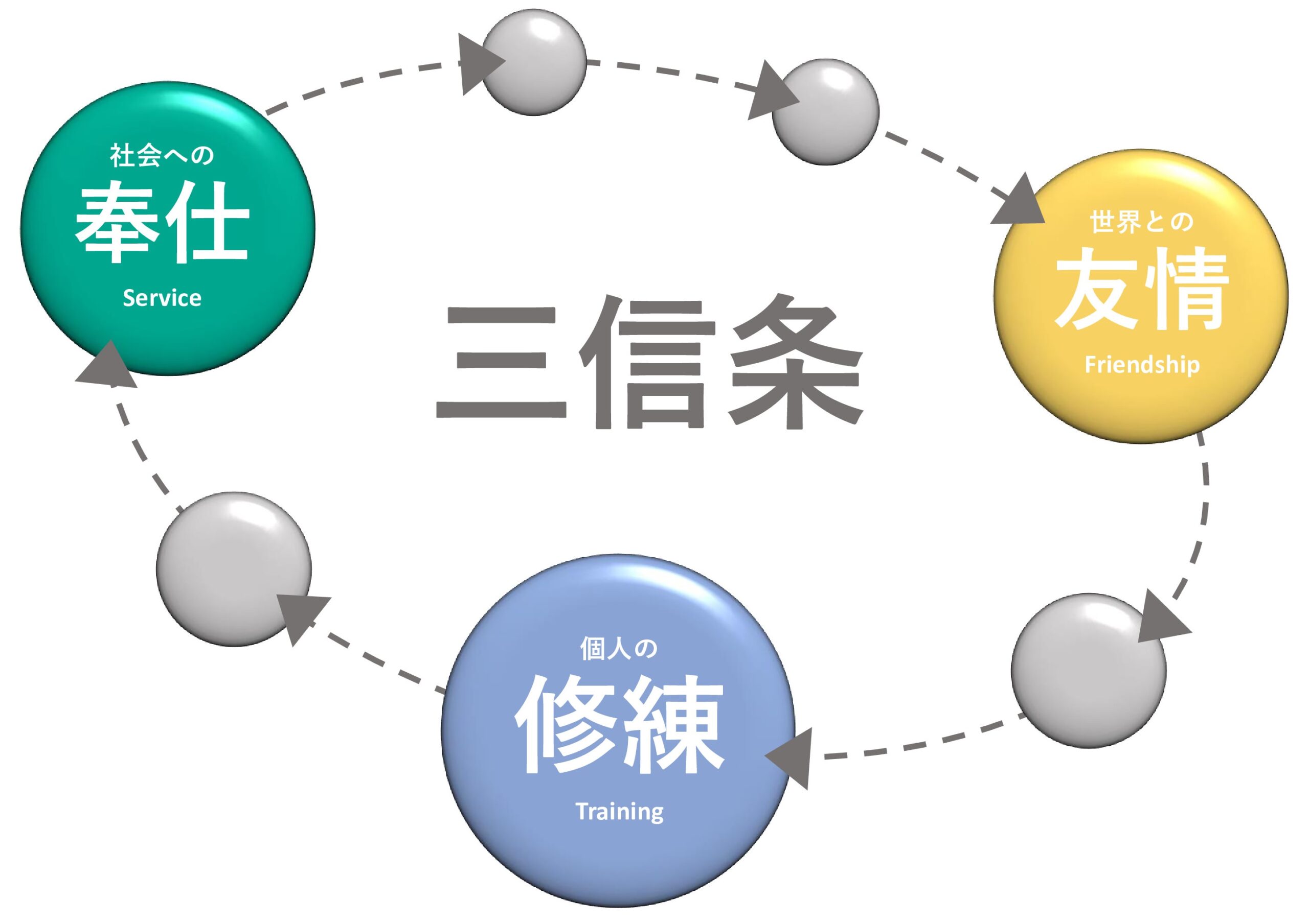 志の高い青年経済人によって『修練』『奉仕』『友情』という三信条のもと、
